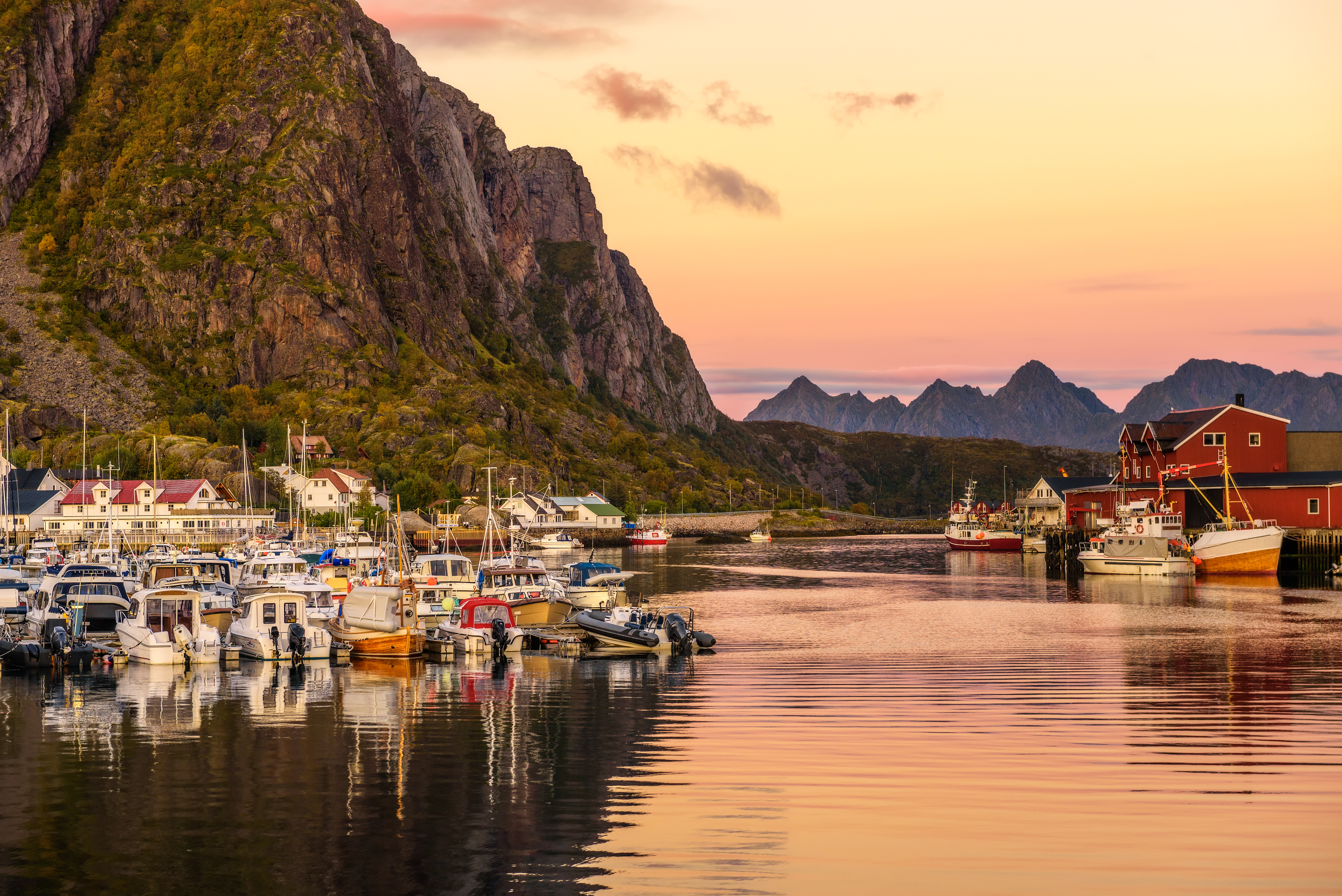 Frukost. Nu fortsätter vi med vår buss söderut genom ö-riket. Södra Lofoten erbjuder ofattbart vackra vägar som vi färdas efter i långsam takt. Vi gör stopp längs vägen och i det vackra Reine stannar vi för fri tid och lunchmöjligheter innan vi kliver ombord på färjan som tar oss från Lofoten, över Vestfjorden till fastlandet (ca. 4 timmar).